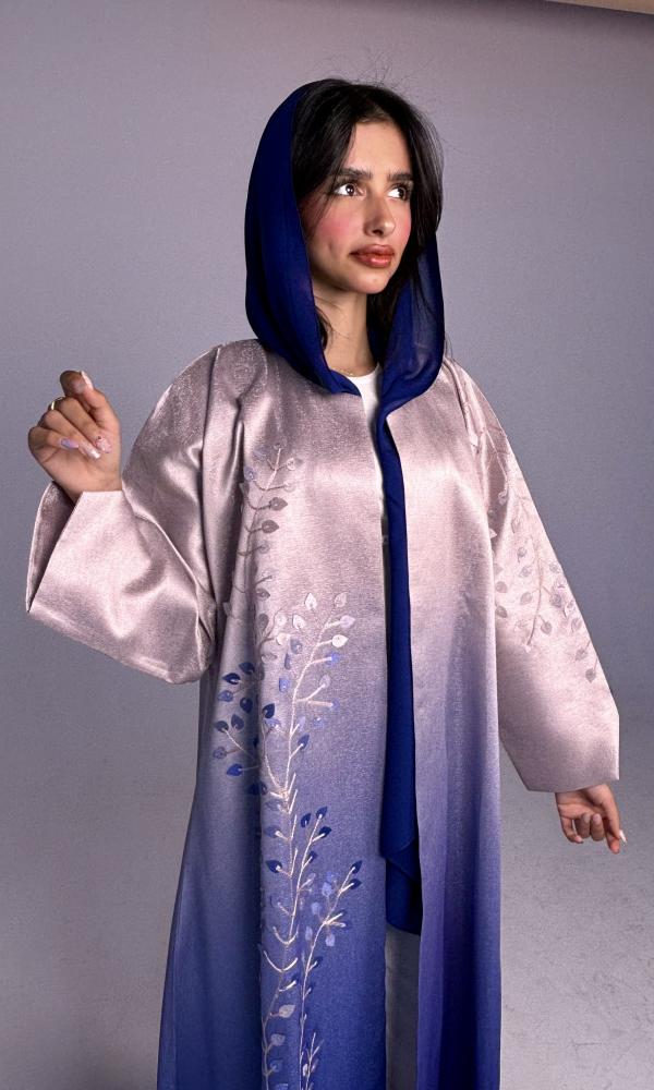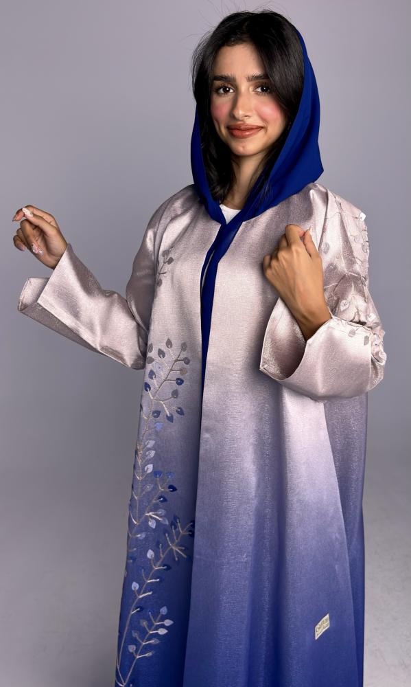 عباية تأتي بلون الازرق مموج بالسكري و بقماش تفته روسي مطرز
